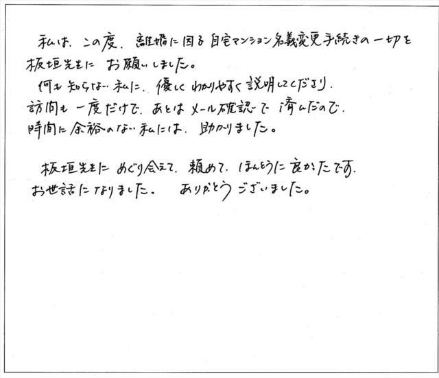 <依頼内容:夫から妻への離婚・財産分与による名義変更>